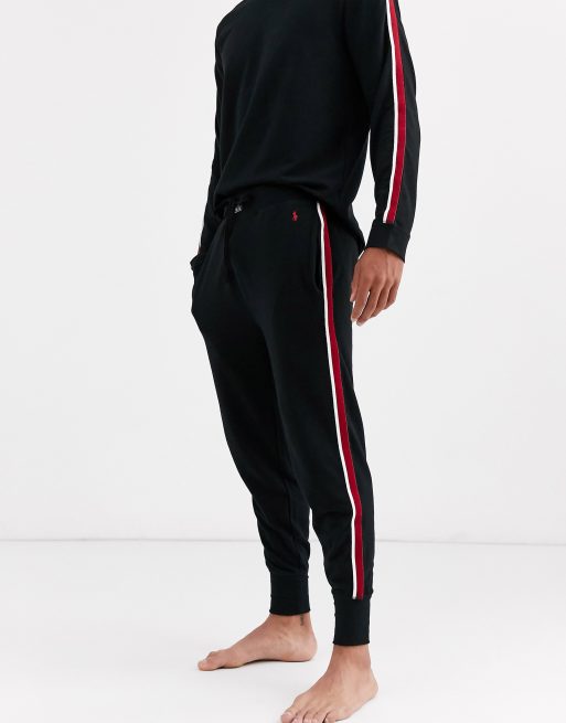 Polo Ralph Lauren lounge jogger in black with red white side stripe Very well made.
