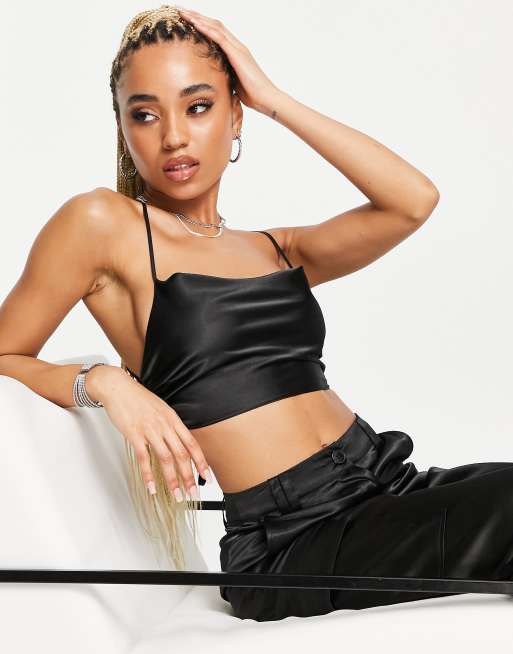 ASOS DESIGN satin strappy tie top co ord in black Very well made.