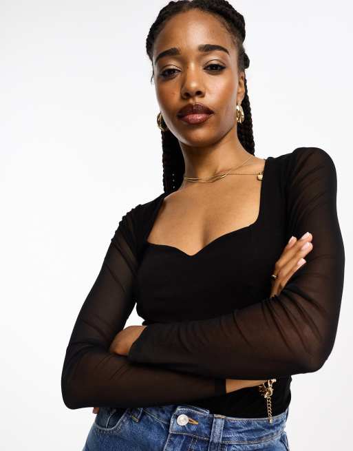 ASOS DESIGN Tall sweetheart neckline bodysuit with mesh sleeve in Very well made.