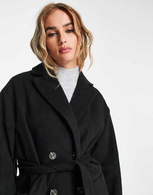 Monki belted wool blend double breasted coat in black Very well made.
